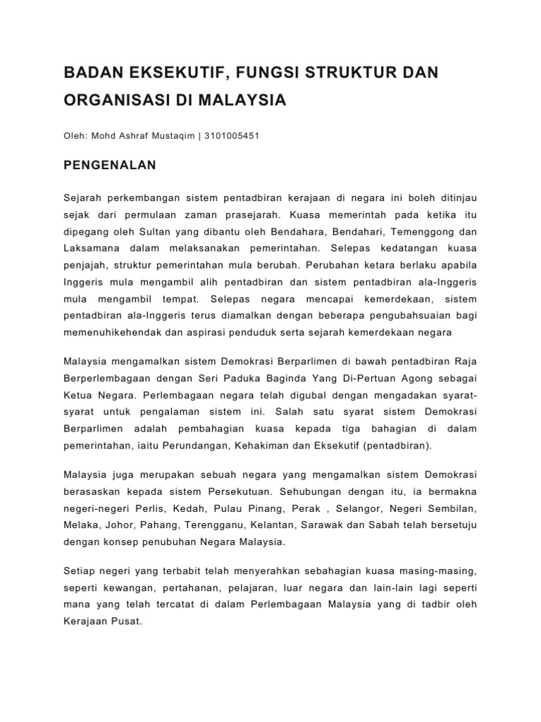 Doktrin Pengasingan Kuasa Real 1 from img.pdfslide.tips Banyak pemuda malaysia dikirim ke indonesia untuk menimba ilmu di berbagai perguruan tinggi kita. Bwf mengatakan seorang eksekutif perusahaan perlengkapan olahraga asal malaysia dijatuhi hukuman seumur hidup tak boleh terlibat kegiatan bulu tangkis karena yang bersangkutan mendekati para pemain internasional dan menawarkan uang unntuk memanipulasi hasil pertandingan. Tak dilupakan jugak, kita ada yang. Ydpa dan dewan negara dan dewan rakyat badan pentadbiran (eksekutif). Isi karya tulis ilmiah merupakan hasil riset terapan/uji coba di laboratorium, yang didukung oleh referensi ilmiah serta data dan atau informasi yang relevan, valid dan cukup. Di indonesia, lembaga eksekutif terdiri atas 2 bagian yaitu governing bodies dan support bodies. Eksekutif juga disebut pemerintah atau kerajaan di dalam sistem parlimen dan juga disebut pentadbiran di dalam sistem kongres contohnya di amerika syarikat. Badan perundangan malaysia (video dokumentari pam).