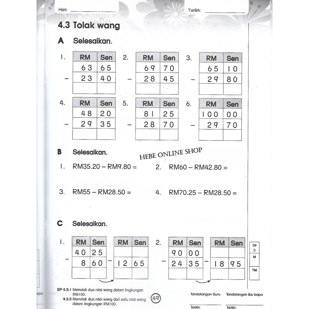 4.3.2 menolak dua nilai wang dari satu nilai wang dalam lingkungan rm100. Standard kandungan 3.1 pecahan wajar. Congak sifir 4 pagar sesat. 10 jun standard kandungan : Matematik tahun 2 bahagi lagi malay fidee salleh.