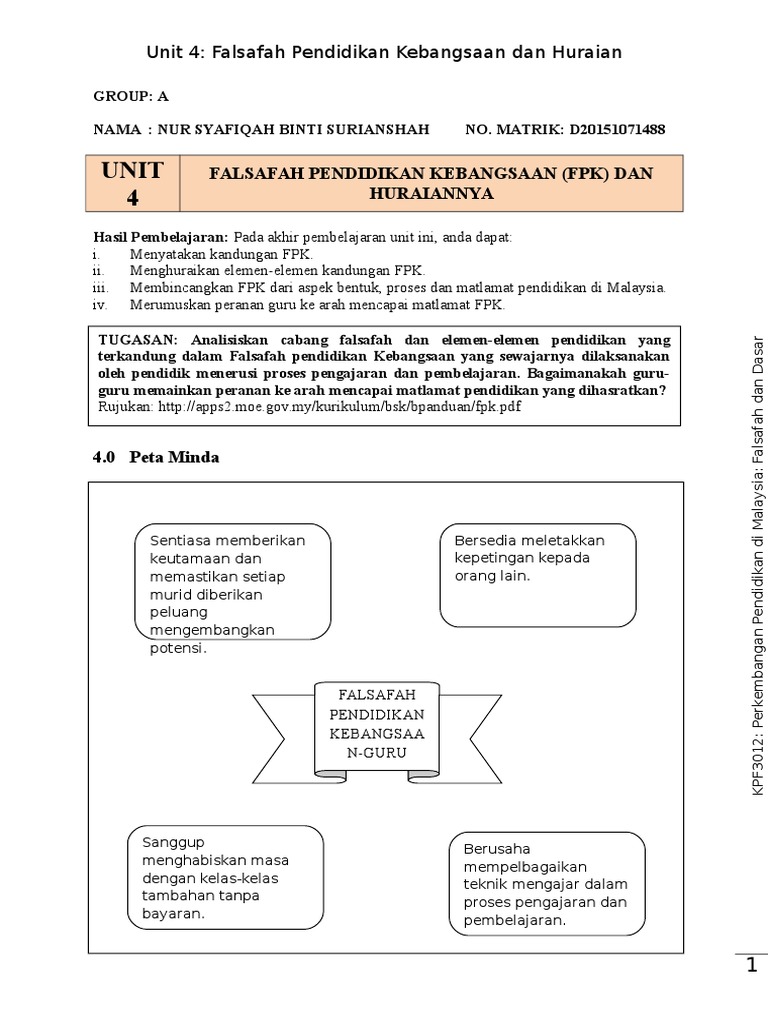 Huraian unsur falsafah pendidikan kebangsaan. Maka, falsafah pendidikan kebangsaan (fpk) adalah digubal daripada usaha berfikir yang rasional dan kritis berlandaskan. Pendidikan yang berkesan bakal melahirkan bangsa yang mempunyai jati diri yang kuat dan mulia. Falsafah pendidikan yang menjadi panduan bagi semua aktiviti pendidikan di malaysia dikenali sebagai fpk. .4 falsafah pendidikan kebangsaan & huraian kpf3012:
